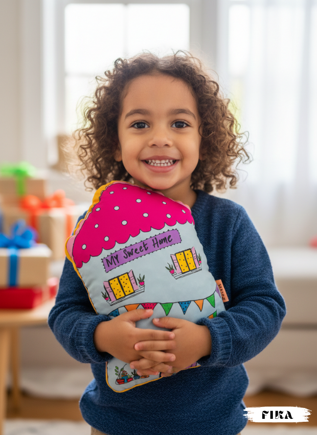 The Blue House Cushion is crafted on premium satin with a digitally printed, customizable colorful design that brings instant charm and funk to any setting. Whether placed on a sofa, chair, or bed, its vibrant style adds personality and warmth to your space. Beyond décor, it also makes a unique and thoughtful gift option for those who love artistic and lively accents.