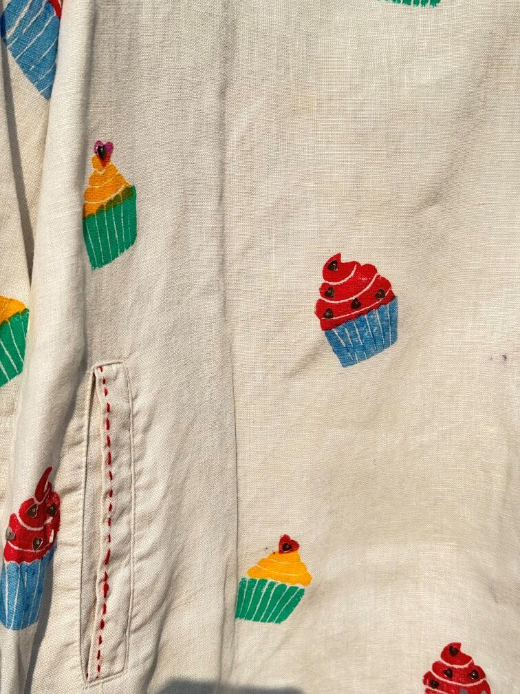 • Hand block printed cupcake motifs with heart sequences for a playful, cheerful vibe