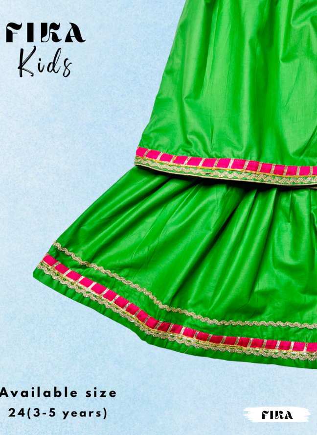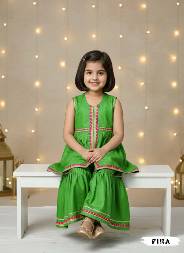 Celebrate festive occasions with lively elegance in our Green Blossom Sharara Set, thoughtfully designed to blend tradition and comfort.