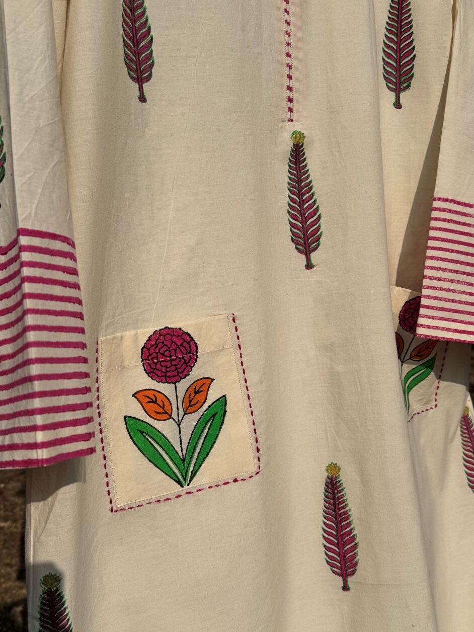 - Pattern: Hand block printed floral motifs
