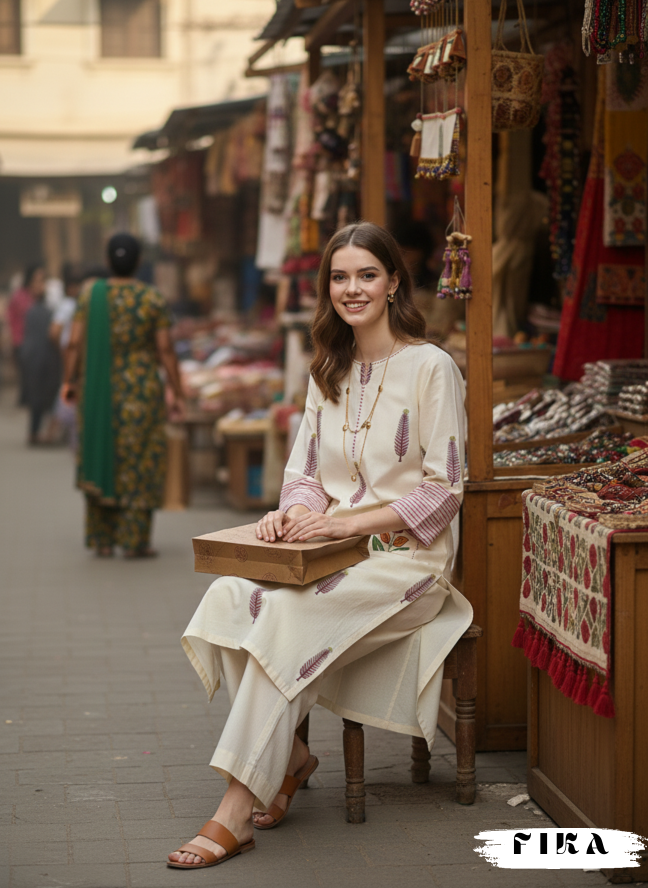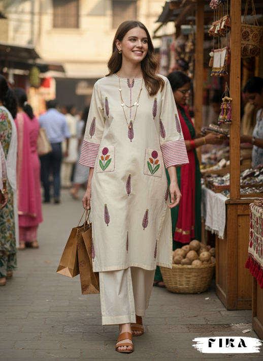 Discover understated elegance with Ivory Bloom, a handcrafted cotton kurta that embodies FIKA Apparel’s signature artistry.