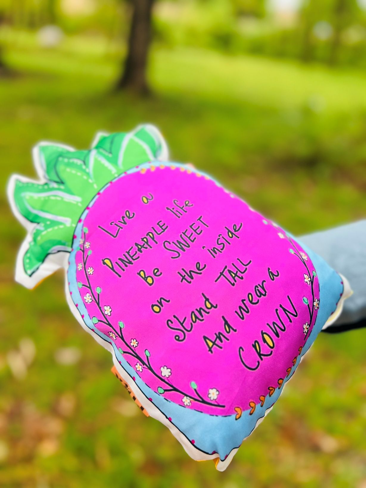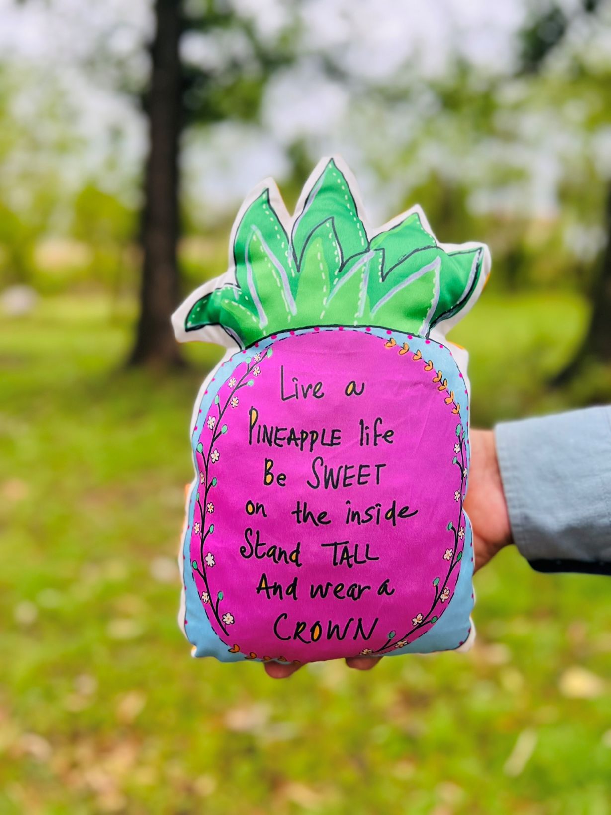 The Pineapple Blue Cushion is a round satin cushion, digitally printed with a vibrant and colorful design that adds instant funk to any setting. Its playful look and soft finish make it a stylish décor accent, perfect for livening up sofas, chairs, or cozy corners. Beyond décor, this cushion also serves as a unique and thoughtful gift option for anyone who loves bold and artistic touches in their home.
