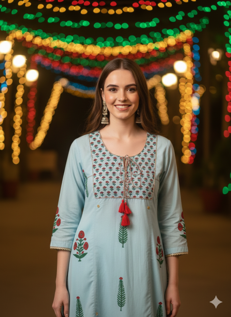 - Cut: Long A-line kurta