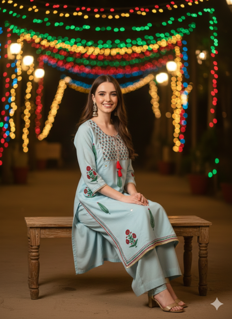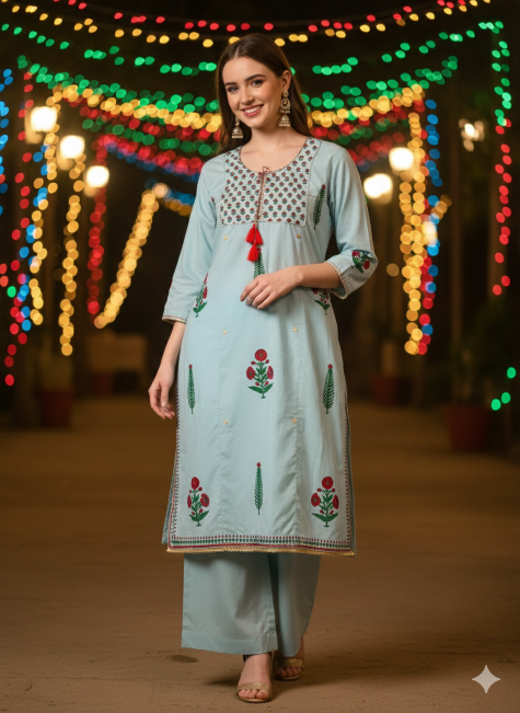 - Dupatta: Matching handblock printed dupatta