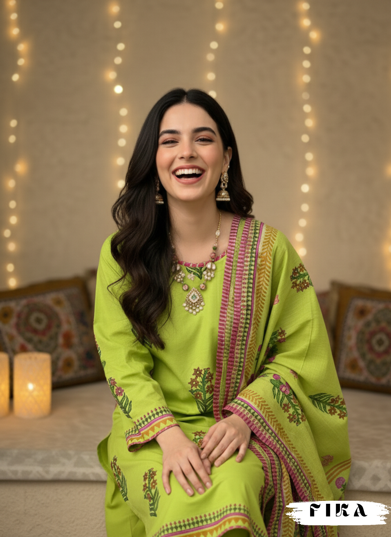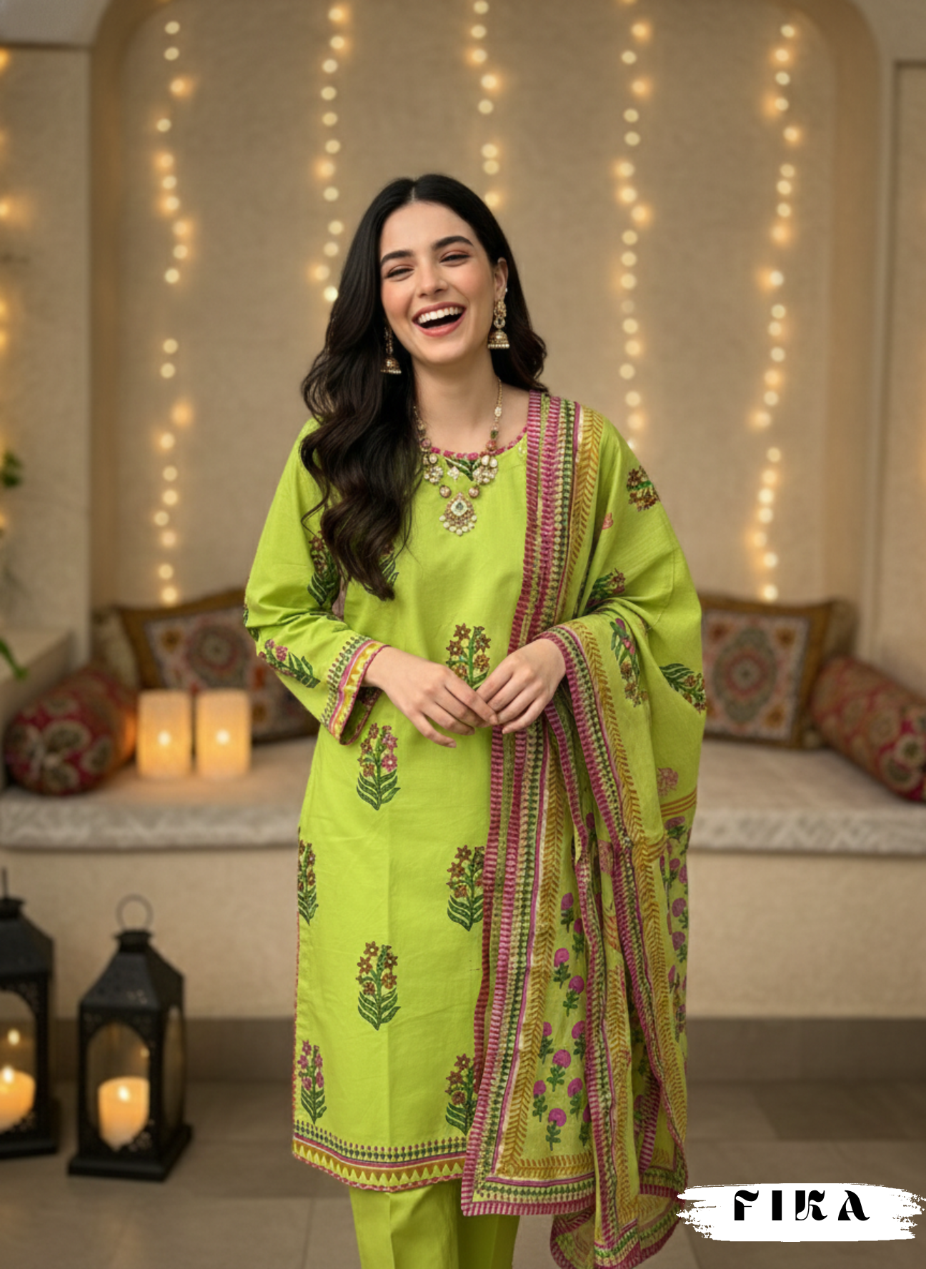- Pieces: 3Pc (Shirt, Trousers, Dupatta) *any 1 piece can also be ordered by whatsapp